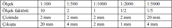 Örneğin 1:5000 ölçekli bir çıkışta yazıların 4 mm olarak görünmesi isteniyorsa çizim sırasında